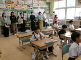 「1年生に早く学校生活に慣れてもらう」という目標をもって、1年生を迎える会を実施しました。 1年生と2年生が、手をつないで入場。 はじめの言葉。 4年生が1年生の紹介をしました。 好きなものは・・・ 高尾小学校についての3択クイズ。1年生も挙手をしました。 遊びタイム。じゃんけん列車で楽しく交流。 みんなが楽しい会になりましたね。 ALTのケイト先生も参加。 歌に合わせて踊ります。 1年生も上学年をまねしながら踊りました。 最後に、プレゼントタイム。王冠とメダルを付けてもらい、嬉しそう! おわりの言葉。 退場も2年生が先導します。楽しかったね!