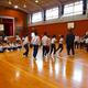 毎年恒例の長縄大会本番。今日の日をめざして子どもたちは練習を頑張ってきました。 跳ぶ時も、応援する時も一生懸命です。 進行・運営は、企画委員がします。 今日の体育館はとても寒く、最初にランニングをしました。 準備体操で、体をほぐして・・・ いよいよ、本番!初めは学級で跳びます。大会初参加の1年生も頑張りました。 2年生は4人で跳びました。だれ一人あきらめずに跳びました。 3・4年生。みんなで流れるように8の字を描きます。 一生懸命な中にも楽しさを見つけている5・6年生。さすがですね! 後半は、縦割り班で跳びました。1年生も上学年のお兄さんやお姉さんと一緒に記録に挑戦です。 応援にも熱が入ります。 記録賞贈呈。本当によく頑張りました。 各学年の代表者が感想を発表しました。 今日欠席した仲間を気遣う感想を発表した2年生。いろいろな場面で感動を味わうことができた素敵な大会になりました。