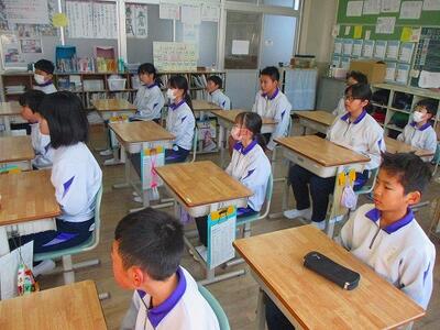 3学期も頑張ろうと思っていたところ、業間時間に大きな地震がありました。子どもたちは避難訓練のように落ち着いて避難することができました。