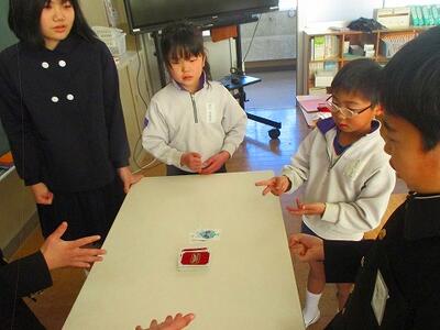 室内ゲームクラブ。2年生も参加してカードゲームをしました。