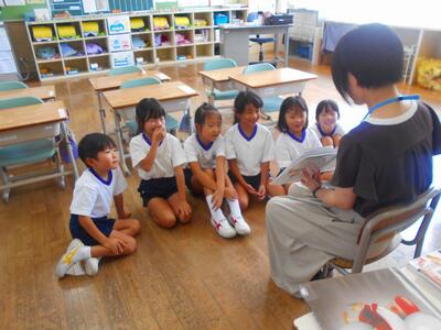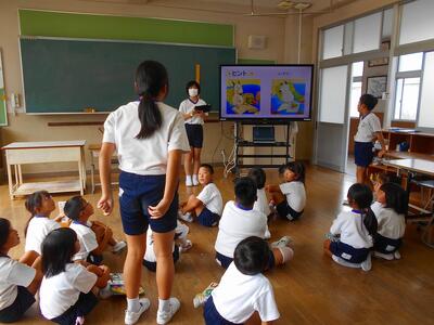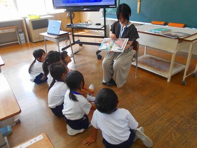 今回は、1年生と2年生に絵本の読み聞かせをしました。