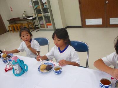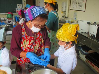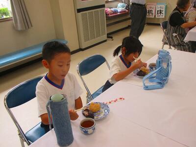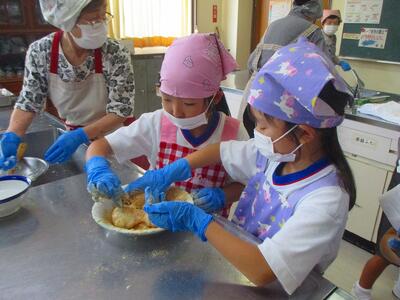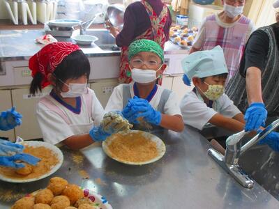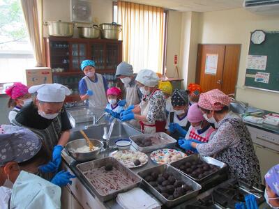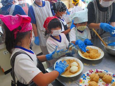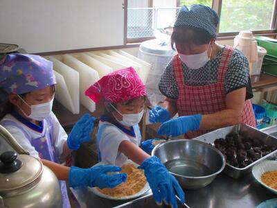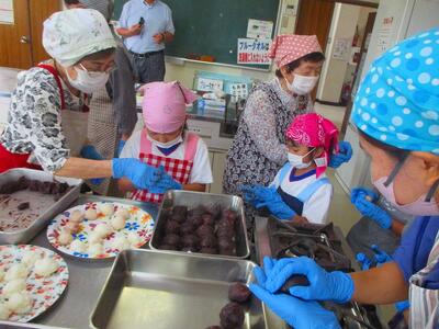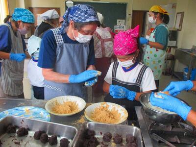 昨年度は12月に行っていた公民館主催事業「ぼたもち作り教室」ですが、今年度は9月に実施され、1・2年生が参加しました。