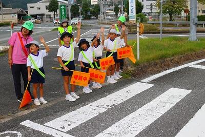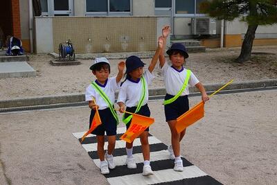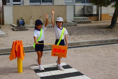 秋は、1・2年生が横断歩道の安全な歩き方について学習します。