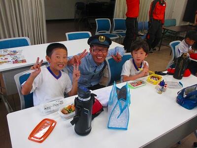 美味しいお弁当タイム。駅員さんと一緒にパチリ!