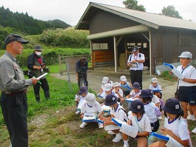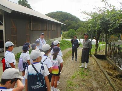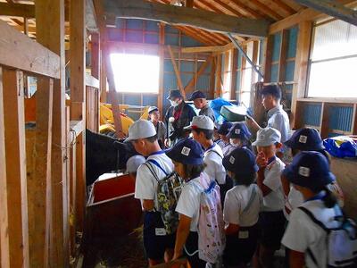 3・4年生が、新見市ふるさとキャリア教育推進事業の一環で、新見市千屋の「峠田牧場」に見学に行きました。