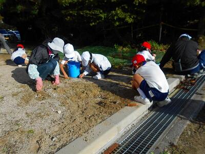1・2年生はパンジーの苗やチューリップの球根を植えました。
