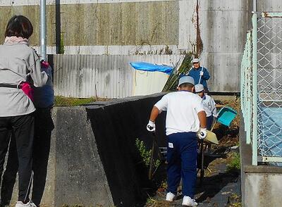 3・4年生は、地下道や遊歩道近くの落ち葉掃きや・・・