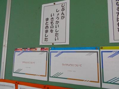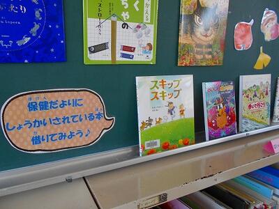 11月の読書活動 投稿: HP管理者 (11/06) 図書室は11月の掲示になっています。 11月の保健の本6冊も展示しています。今月は運動に関係した本です。もちろん借りることができます。 「スキップ スキップ」を読んだら、スキップしたくなりました。 児童玄関付近の掲示板には、1年生の作品が展示されています。 1年生が図鑑などで生き物について調べてまとめたものを掲示していると、上級生が「すげ~」と驚いていました。1年生も、文字で表現することができています。 Tweet -
