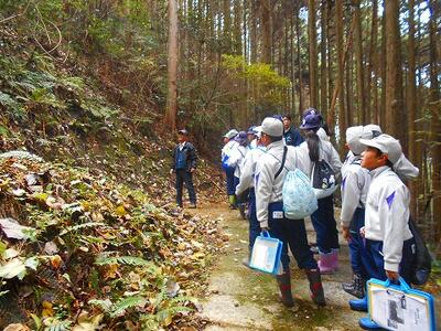 前日までの雨で道が滑りやすくなっていましたが、みんな元気に登りました。前半終了!