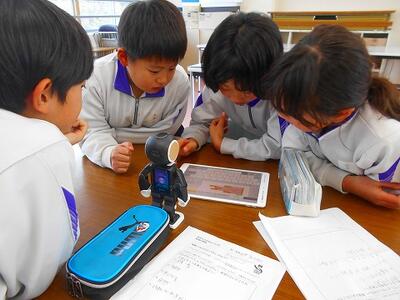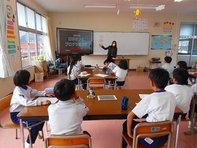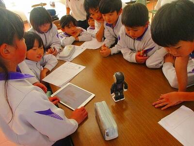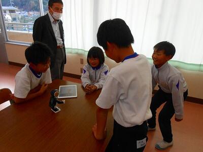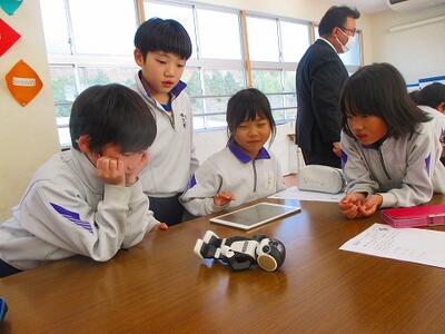 3・4年生が、小型コミュニケーションロボット「ロボホン」を使ってプログラミング学習を行いました。