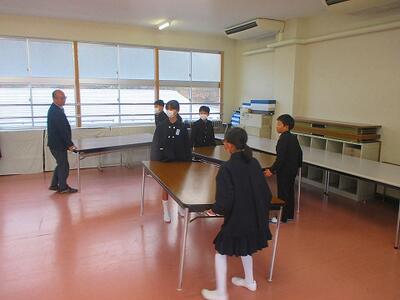 始業式が終わったら、5・6年生が多目的室で授業ができるように机や椅子を移動しました。