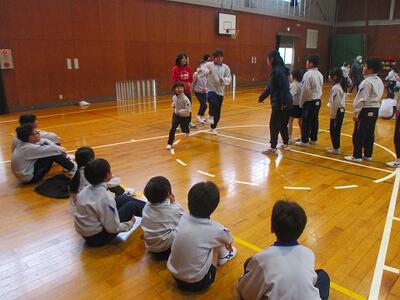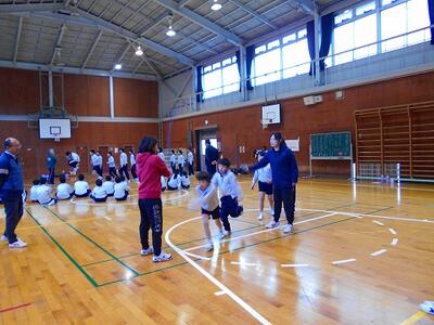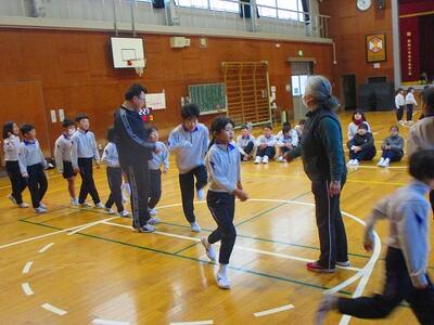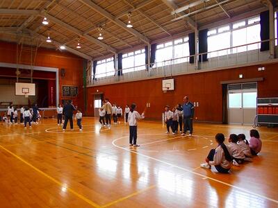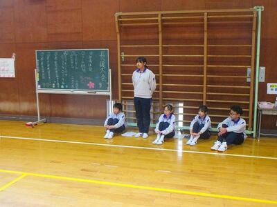 後半は、縦割り班で跳びました。1年生も上学年のお兄さんやお姉さんと一緒に記録に挑戦です。