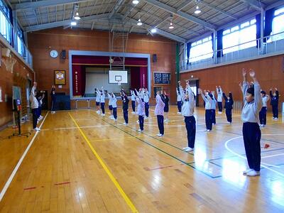 準備体操で、体をほぐして・・・