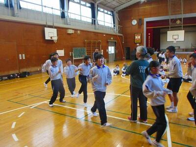 3・4年生。みんなで流れるように8の字を描きます。