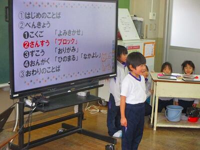 授業形式で会は進みます。1時間目は国語。絵本の「読み聞かせ」をしました。