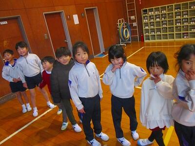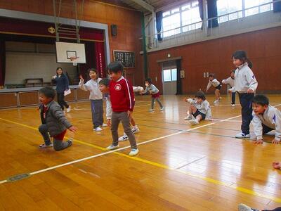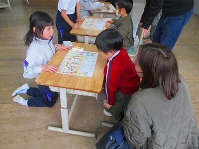 保護者への入学説明会を行っている間、1・2年生が新1年生と一緒に遊びました。