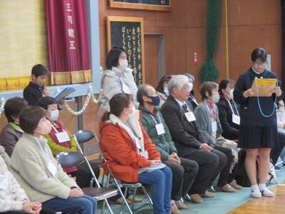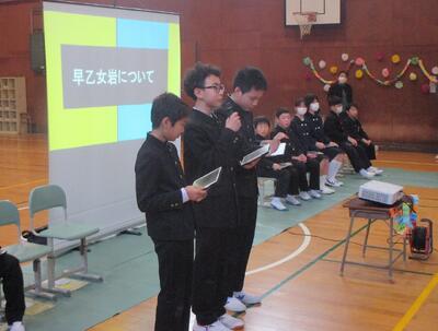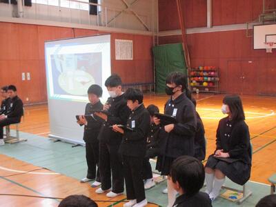 5・6年生の出し物は、総合的な学習の時間の「ふるさと学習」で調べたことの発表でした。