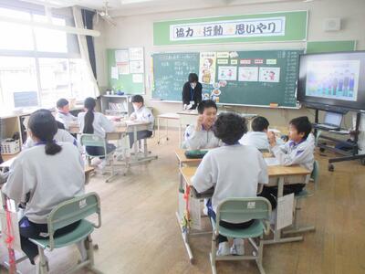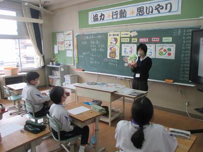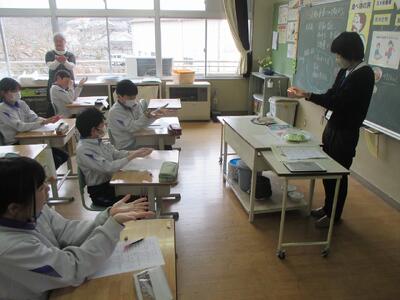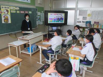 栄養指導(5・6年生) 投稿: HP管理者 (02/27) 5・6年生の栄養指導は、「成長期の食事について」でした。 今まさに成長期の5・6年生。いろいろな栄養素をバランスよく摂取することが大切です。 野菜も大切な栄養です。適切量を食べるには・・・ 両手いっぱいです。食べているかな? グループで考えを伝え合います。 自分事として考える5・6年生。 休みの日にも成長期の栄養の大切さについて思い出して食事ができたらいいですね。 Tweet -