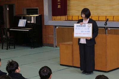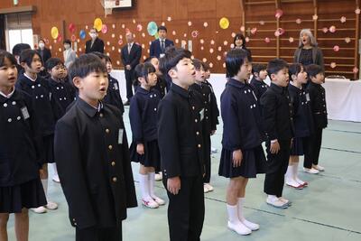 令和8年度 着任式・第1学期始業式 投稿: HP管理者 (12:36) 令和8年度が始まりました。 着任式。転任の先生のあいさつを静かに聞く子どもたち。 校長先生のお話。「今年度は、自分で考えて自分から行動する人になりたいですね。」 担任発表。ドキドキするのは、子どもだけではありません。 校歌斉唱。素敵な歌声で新年度がスタートしました。 Tweet -