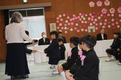 入学式~1年生の様子 投稿: HP管理者 (12:48) かわいい6名の1年生が入学しました。 入学式でも姿勢正しい2~6年生。 1年生入場。 代表の6年生が、歓迎の言葉を堂々と発表しました。 教科書授与。 「大切に使いましょう」「ありがとうございます」 入学初日から、タブレット端末を使う1年生。 入学2日目で給食スタート!行儀よく食べる1年生。 Tweet -