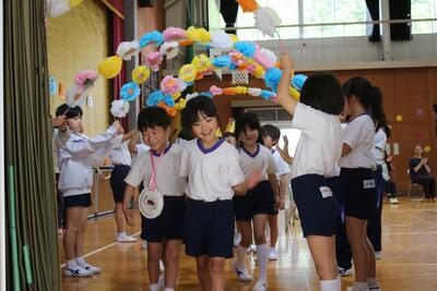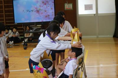 最後に、プレゼントタイム。王冠とメダルを付けてもらい、嬉しそう!