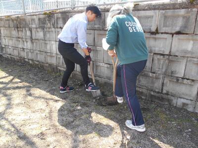 今朝は霜が降りるような寒い朝でしたが、子どもたちは環境委員会が分担した場所の草を抜いたり、松の落ち葉を拾ったりしました。