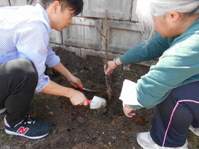 高尾小学校の象徴でもある桜並木の一員として、大きく育つことを祈っています。ありがとうございました。