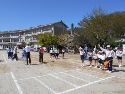 全校遊び。お題の言葉の数で集まります。6年生と一緒に・・・